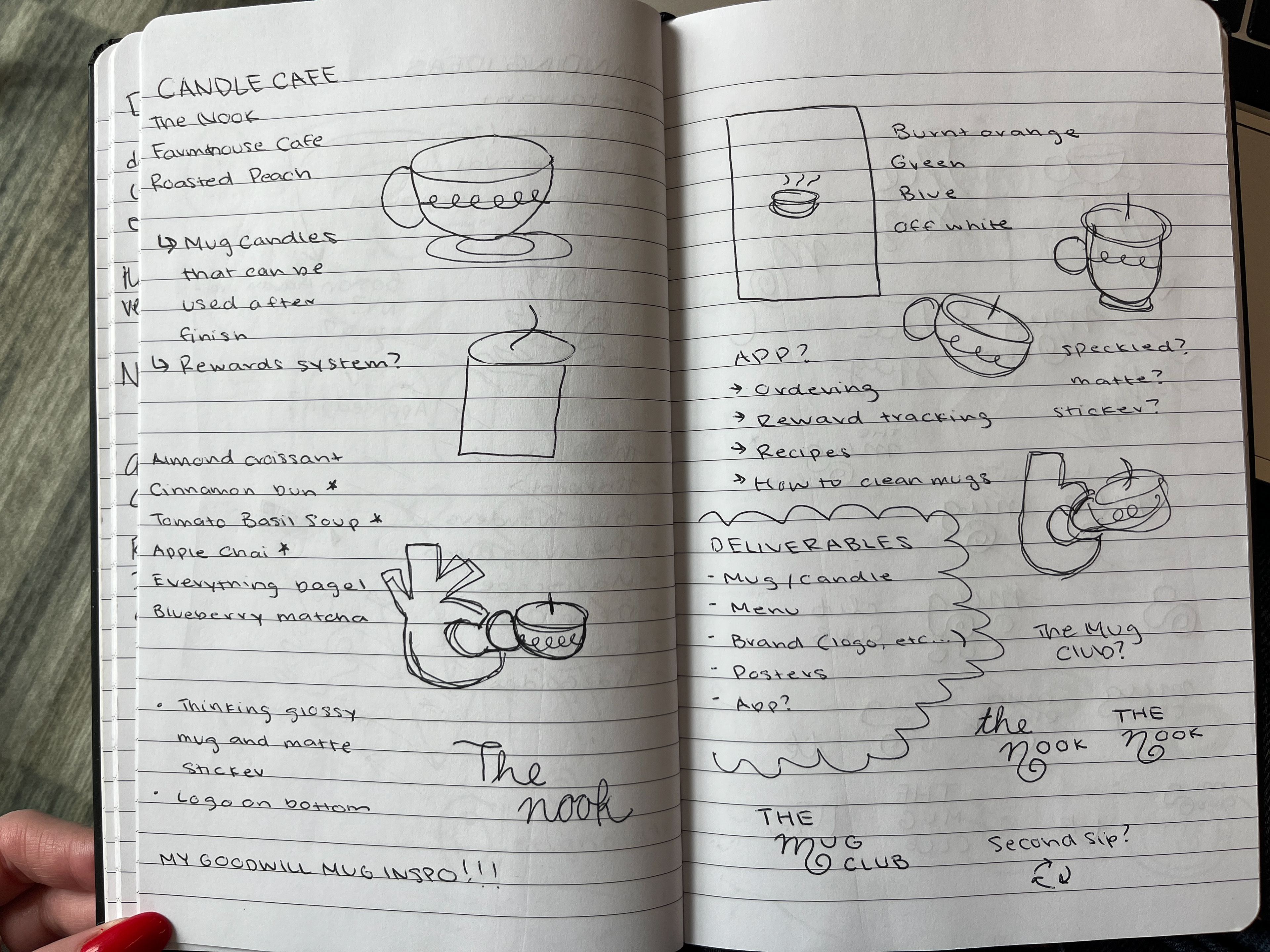 I chose to add the latte art swirl from the logo to the bottom of each mug as a subtle yet lasting brand detail. Since the candle labels are temporary, this small design element ensures that The Mug Club's identity remains even after the label is removed. It creates a thoughtful, cohesive brand experience, whether the mug is being used for coffee, repurposed at home, or returned for a refill. This hidden touch reinforced our connection to café culture while making each piece feel uniquely part of The Mug Club community.
